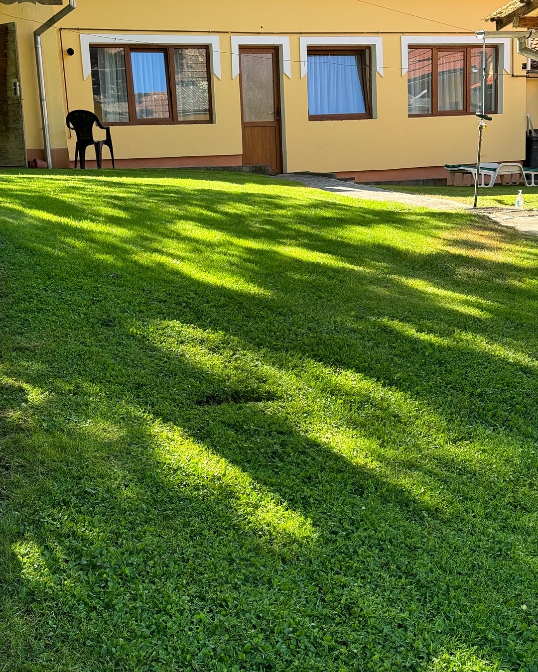 Locatia se preteaza pentru pentru 5 familii. Deoarece sunt doua corpuri de clădire distincte, se pot închiria eventual și separat, fiecare beneficiind și de terase afara dar acoperite, cu masa și bănci/scaune. Exista si curte mare cu verdeata, gazon, trambulina și tiroliană pentru copii, zona montana in jur, iar la poarta este un loc de joaca public pentru copii, cu leagane si tobogan.